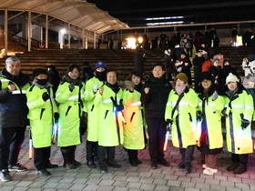 [정도일보 김제영 기자] 이상일 용인특례시장은 31일 밤 시청 야외음악당에서 열린 ‘용인반도체 국가산단 사수 촛불문화제’(이하 촛불문화제)가 치러지는 도중에 안전사고나 불상사가 발생할 경우 즉각 대처하기 위해 행사가 종료될 때까지 현장을 챙겼다. 이 시장은 또 용인의 반도체 프로젝트들이 정상적으로 진행돼야 한다는 뜻을 밝히며 결의문을 낭독한 시민들을 격려했다. 이 시장은 이날 행사가 마무리될 때까지 현장에서 시와 주최 측, 관계기관이 협의한 대로 안전관리가 이뤄지고 있는지 점검하며 행사를 지켜봤다. 행사는 식전 프로그램까지 포함해 2시간 가량 차분히 진행됐으며, 사고 없이 종결됐다. 앞서 시는 주최 측은 물론 경찰‧소방과 협의를 거쳐 안전관리계획과 안전 사고 예방 대책을 수립했다. 주최 측은 구역별 안전관리 요원을 둬 동선과 밀집도를 관리토록 했고, 소방서도 비상 출동 체계를 가동하기로 했다. 시는 기온이 영하로 떨어지는 점을 고려해 저체온증 등 한파에 따른 안전사고가 발생하지 않도록 시청 지하 1층과 1층을 개방하는 등 한파 대책을 마련했고, 시의 재난지휘차량도 현장에 배치했다. 야간에 시야가 확보가 되지 않아 사고가 일어나는 일이 없도록 간이 조명 7개도