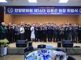[정도일보 김현섭 기자] 안양문화원은 지난 29일 안양문화원 강당에서 제16대 김용곤 안양문화원장 취임식을 개최했다. 31일 문화원에 따르면 이날 취임식은 연임한 김용곤 원장의 취임을 공식적으로 알리는 자리뿐만 아니라, 2025년 한 해 동안 안양문화원의 문화 활동을 되돌아보고 문화가족이 화합하는 송년회를 겸해 진행됐다. 취임식에는 최대호 안양시장을 비롯해서 박준모 안양시의회 의장, 장명희 보사환경위원장과 음경택, 강익수, 장경술, 이재현, 허원구 시의원, 유영일, 김재훈 경기도의원 등 많은 시·도의원이 참석했다. 또, 김용규 경기도문화원연합회장과 의왕, 과천, 시흥, 용인, 양평, 광명문화원장이 참석했으며, 안양지역의 사회단체장, 문화원 원로회, 문화서포터즈, 문화유산해설사 등 문화가족과 지역 인사들이 함께해 뜻깊은 시간을 나눴다. 김용곤 원장은 취임사를 통해 “이번 취임은 개인의 영광이 아니라 안양문화원의 미래를 다시 맡겨주신 회원 여러분의 신뢰에 대한 응답”이라며, “앞으로의 4년은 전통을 지키는 문화원을 넘어, 디지털과 미래 세대가 함께하는 문화 플랫폼으로 도약하는 시간이 될 것”이라고 밝혔다. 앞으로의 운영 방향으로는 ▲AI·디지털 기술을 접목한 문