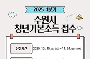 [정도일보 고정희 기자] 수원시는 15일 오전 9시부터 11월 24일 오후 6시까지 24세 청년을 대상으로 ‘2025년 4분기 청년기본소득’ 신청을 받는다. 14일 시에 따르면 청년기본소득은 청년층의 사회 참여를 촉진하고 사회적 기본권을 보장하기 위한 제도다. 만 24세 청년에게 분기별 25만 원씩, 연간 최대 100만 원을 지역화폐로 지급한다. 4분기 지급일은 12월 20일이다. 대상은 신청일 기준으로 경기도에 주민등록을 둔 24세(2000년 10월 2일~2001년 10월 1일 출생) 청년이다. 3년 이상 연속 또는 합산 10년 이상 경기도에 거주한 경우 신청할 수 있다. 수원시 거주 청년은 경기지역화폐 ‘수원페이’로 청년기본소득을 받는다. 수원페이 카드가 없는 대상자에게는 신청할 때 입력한 주소로 카드를 발송한다. 수원페이 카드 수령 후 코나아이 고객센터(1899-7997) 또는 경기지역화폐 모바일 앱에서 등록하면 사용할 수 있다. 수원페이는 수원시 내 전통시장과 소상공인 업체 등에서 사용할 수 있다. 학원 수강료나 시험 응시료 결제 등으로 청년기본소득 사용처를 점차 확대할 예정이다. 경기도일자리플랫폼 잡아바(https://apply.jobaba.net)