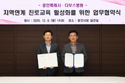 [정도일보 김제영 기자] 용인특례시는 8일 지역 중학생들의 진로탐색에 도움을 주기 위해 다보스병원과 협약을 맺고 의료분야 체험교육을 받을 수 있도록 했다. 이날 이상일 시장과 양성범 다보스병원 이사장은 시청 시장접견실에서 ‘지역연계 진로교육 활성화를 위한 업무협약’을 맺었다. 시와 병원이 협력해 지역 기반 교육자원을 활용한 체험 중심의 진로 교육을 지원하기로 뜻을 모은 것이다. 시는 사업 운영에 필요한 행정적 지원과 사업의 원활한 추진을 위한 기반을 마련하고, 병원은 중학생을 대상으로 의료분야 진로 교육 프로그램 운영, 병원 실습 기회 제공, 직무별 멘토링 활동 등을 지원한다. 시는 지역 내 학생들이 실제 의료 현장에서 다양한 직무를 경험할 기회를 제공해 진로 선택의 폭을 넓히고, 실질적인 진로 탐색에 도움을 줄 계획이다. 앞서 시는 지난 4월과 5월 반도체 기업인 ㈜고영테크놀러지, 도쿄일렉트론코리아(주)와 진로교육 활성화를 위한 업무협약을 체결한 바 있다. 이상일 시장은 “청소년이 의료 현장을 체험하고 의료 관련 교육도 받으면서 진로를 탐색할 수 있도록 협약을 맺어준 양성범 다보스병원 이사장님과 병원 관계자들께 감사인사를 드린다”며 “학부모들과의 간담회 때