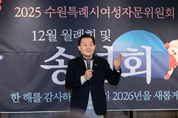 [정도일보 고정희 기자] 이재준 수원시장이 3일 인계동 한 음식점에서 열린 수원시 여성자문위원회 송년 행사에 참석해 “아빠들을 위한 프로그램 운영부터 여성 권익 증진을 위한 후원까지 올해 여성자문위원회가 보내주신 따뜻한 성원에 감사드린다”고 말했다. 이어 “내년에도 수원시를 대표하는 여성단체로서, 여성들과 이웃들의 삶 구석구석을 살펴 주시길 바란다”고 덧붙였다. 이날 행사에는 수원시 여성자문위원회 김외순 회장과 회원 등 50여 명이 참석했다. 여성복지 발전에 이바지한 유공자에게 수원시장상, 수원시의회 의장상, 경기도지사상, 국회의원상 등을 수여했다.
