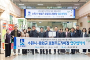 [정도일보 고정희 기자] 수원특례시(시장 이재준)와 봉화군농어업회의소는 19일 수원시청에서 로컬푸드 입점 협약을 체결했다. 협약식은 이날 시청 별관 앞에서 열린 ‘봉화 수원 캠핑장 개장 기념 농산물 직거래장터’에서 진행됐다. 수원시는 인구소멸 위기 지역 농가의 안정적 판로 확보를 지원하고, 시민에게 신선한 지역 농산물을 제공할 예정이다. 협약식에는 남상은 수원시 농업기술센터 소장, 김주익 봉화군농어업회의소 회장, 신종길 봉화군 농업기술센터 소장 등이 참석했다. 봉화 수원 캠핑장 개장 기념 농산물 직거래장터에는 수원시·봉화군·수원농협·하나로마트 수원점이 참여했다. 수원로컬푸드직매장은 상추·배추·표고버섯 등 농산물을, 봉화군은 사과·생강·고구마·마 등 주요 특산물을 판매했다. 하나로마트 수원점은 감, 인삼, 대추, 새우젓, 멸치 등 통영·사천·김천 등의 농산물을 판매했다. 방문객에게 정다미 500g 200개와 장바구니 200개를 제공하는 행사도 진행했다. 수원시 관계자는 “수원시민에게 신선한 로컬푸드를 제공하고, 인구소멸 위기 지역 농가와 상생 협력할 수 있는 기반을 마련했다”며 “지역 농가와 시민 모두에게 도움이 되는 직거래장터를 확대하겠다”고 말했다.
