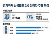 [정도일보 김제영 기자] 경기도가 금융취약계층의 마지막 안전망 역할로 추진한 ‘경기 극저신용대출 2.0’ 1차 신청자 29%가 고금리·불법사금융 이용 경험이 있는 것으로 조사됐다. 경기도는 지난 2월 11일 마감한 ‘경기 극저신용대출 2.0’ 신청자 2,195명을 분석한 결과 신청자의 74%(1,627명)가 대출 용도를 ‘생활비’라고 밝히는 등 금융취약계층의 생계유지와 채무 부담 해소를 위해 금융 지원이 절실한 것으로 나타났다고 20일 밝혔다. 생활비 마련 외에 두 번째 많은 신청 목적으로는 11%(245명)가 기존 채무 상환을 꼽았다. 도는 다수 신청자가 일상적인 생계유지와 채무 부담 해소를 위해 긴급 자금이 필요한 상황임을 보여주는 것이라고 분석했다. 예상 상환기간은 ‘1년 이상 5년 이내’가 62%(1,355명)에 육박하는 등 신청자 다수가 일정 기간 내 상환 의지를 갖고 있는 것으로 분석됐다. 연령대별로는 40대가 34%(742명)로 가장 높은 비중을 차지했으며, 30대 27%(604명), 50대 21%(468명) 순으로 나타났다. 기초생활수급자·한부모·차상위계층 등 법정 취약계층 비율은 14.5%(319명)로 집계됐다. 가구원 수는 3인 가구가 25