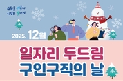 [정도일보 고정희 기자] 수원특례시(시장 이재준)는 12월 9일 오후 3시부터 4시까지 수원시여성문화공간 휴(권선구 동수원로 224번길 10)에서 ‘12월 일자리 두드림 구인·구직의 날’ 채용 행사를 연다. 주식회사 그린씨앤씨텍, 케이티텔레캅주식회사, 주식회사티에프이, 휴먼스토리에프에스㈜, 이트너스㈜ 등 5개 업체가 참여해 전기·전자 부품·제품 조립원, 일반제품 영업원, 기계·무인 경비원, 단체급식 보조원, 일반 택배원 등을 채용한다. 채용 인원은 총 18명이다. 현장에서 구인 기업과 구직자가 1대1 채용 면접을 한다. 수원시는 취업 정보를 제공하고, 이력서·면접 클리닉을 운영하는 등 구직자들을 지원한다. 일자리를 구하는 수원시민은 누구나 참여할 수 있다. 수원일자리센터가 주관하는 ‘일자리 두드림’은 취업에 어려움을 겪는 구직자와 인재 채용을 원하는 기업을 연결해 주는 소규모 채용 행사다. 수원일자리센터는 일자리 두드림 외에도 ‘상설면접’, ‘동행면접’ 등 소규모 채용 행사로 현장 면접과 채용 상담을 동시에 진행하고 있다. 구직자의 부담을 줄이고, 기업이 적합한 인재를 신속하게 채용할 수 있도록 돕고 있다. 문의 : 031-5191-8680, 수원일자리센터