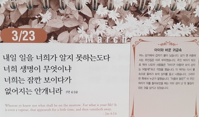 건강하면 건강하기 때문에 사랑하고, 병이 들면 병이 들었으니 더욱더 사랑해야 합니다. 오늘 아내에게 작은 사랑을 표현해 보십시오. 당신의 가정에 행복의 꽃이 만발할 것입니다.