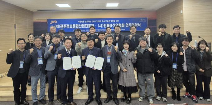 이번 행사는 전북지역 IT기업 간 기술 공유와 협력을 모색하고 최신 IT기술 동향을 소개하는 자리로, 업무협약과 기술교류 세미나로 나뉘어 진행됐다.