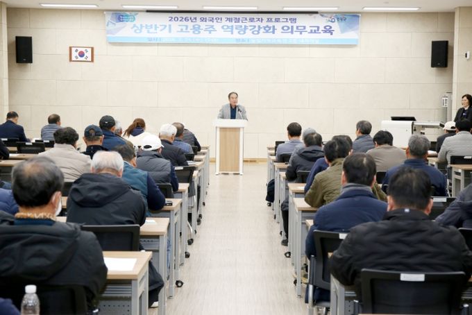 (정도일보) 영광군은 지난 25일 영광군 농업기계교육관 2층 대강의실에서 2026년 외국인 계절근로자 프로그램 고용주들을 대상으로 의무교육을 실시했다고 밝혔다.