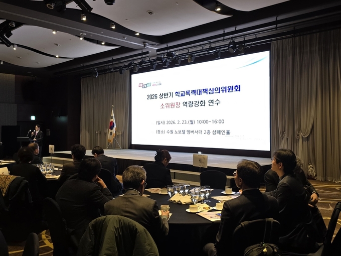 아울러 도교육청은 23일 수원 노보텔에서 ‘2026년 상반기 학교폭력대책심의위원회 소위원장 역량 강화 연수’를 개최했다. 200여 명의 소위원장이 참여한 연수는 ▲회의 운영 리더십 ▲사안 처리 절차와 법령 이해 ▲판례·행정심판 사례 분석 ▲제도 개선안 등을 다뤘다.