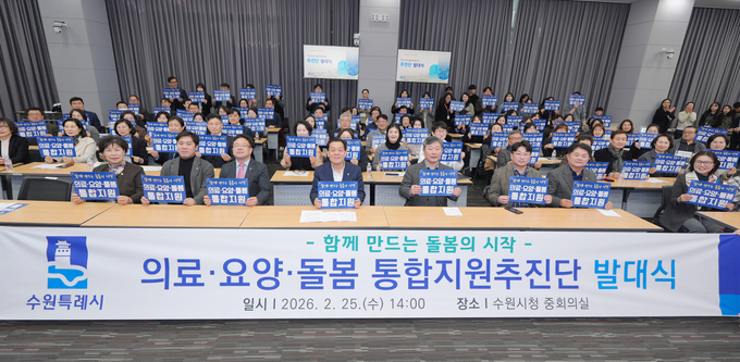 [정도일보 고정희 기자] 수원특례시의회(의장 이재식)는 2월 25일(수), 시청 중회의실에서 열린 ‘의료·요양·돌봄 통합지원추진단 발대식’에 참석해 수원형 통합돌봄 체계의 본격적인 출범을 축하하고, 성공적인 운영을 응원했다.