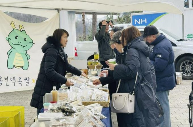 이날 마련한 로컬푸드 직거래장터 판매부스에는 ▲용훈농장(표고버섯) ▲텃밭한아름(방울토마토·오이지) ▲태양굼벵이&누룽지(건조굼벵이·현미누룽지) ▲두레농원(다육식물) ▲아토양조장(백옥쌀 식혜) ▲용인시 로컬푸드 행복장터(오미자유과) 등 지역 농가가 참여해 지역에서 생산한 특산품을 판매하고, 지역 농산물의 우수성을 알렸다.
