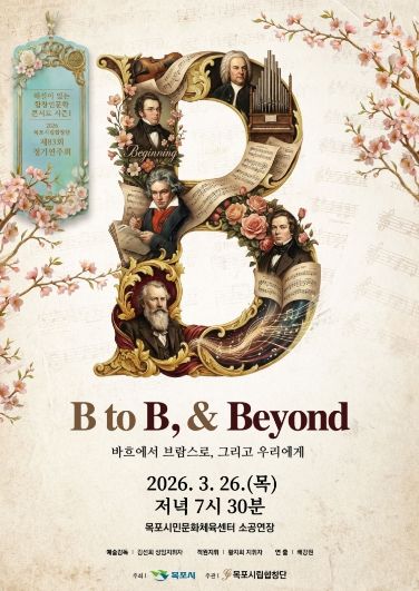 (정도일보) 목포시립합창단(예술감독 겸 상임지휘자 김선희)이 오는 3월 26일 오후 7시 30분, 목포시민문화체육센터 소공연장에서 제83회 정기연주회 'B to B & Beyond(Bach to Brahms) : 해설이 있는 합창인문학콘서트 시즌1'을 개최한다.