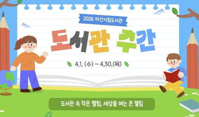 (정도일보) 아산시립도서관은 4월 도서관 주간을 맞아 4월 1일부터 30일까지 한 달간 시민과 함께하는 다양한 독서 문화 행사를 운영한다.