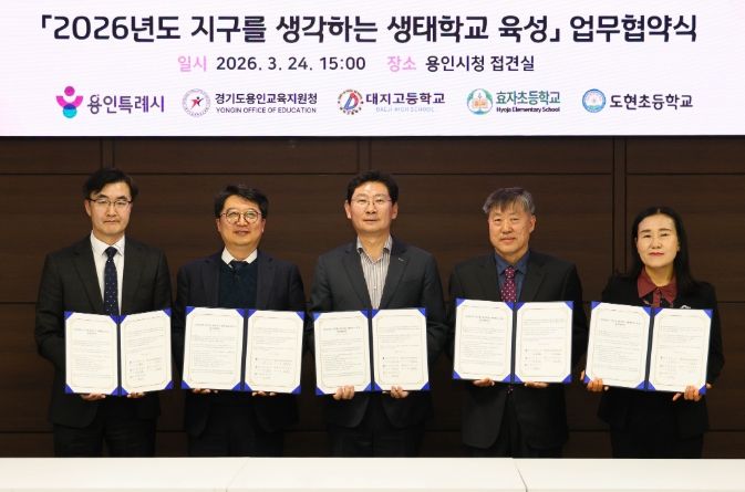 (정도일보) 용인특례시는 24일 시청 접견실에서 용인교육지원청을 비롯해 3개 학교와 ‘지구를 생각하는 생태학교 육성사업’을 위한 협약을 맺었다.