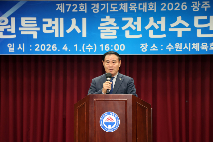 [정도일보 고정희 기자] 수원특례시의회(의장 이재식)는 1일 수원시체육회관 2층 대회의실에서 열린 「제72회 경기도체육대회 수원시 선수단 결단식」에 참석해 선수단을 격려하고 선전을 기원했다.