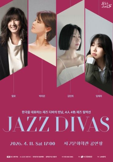 (정도일보) 서구문화회관은 4월 11일 오후 5시 서구문화회관 공연장에서 한국을 대표하는 재즈 디바 말로, 박라온, 김민희, 임채희를 초청하여'JAZZ DIVAS'콘서트를 개최한다.