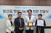 (정도일보) 파주시 문산읍은 지난 10일, 14년간 지역 내 독거어르신 등 취약계층을 위해 꾸준한 나눔을 실천해 온 ‘센트럴제일안과’를 문산읍 행복나눔가게 15호점으로 지정하고 현판 및 감사패를 전달했다. 행복나눔가게 사업은 지역 내 사업체가 정기적인 기부를 통해 취약계층을 지원하는 문산읍의 민관 협력 나눔 사업이다. 이번 15호점 지정은 오랜 기간 이어진 각별한 인연과 순수한 나눔의 뜻이 더해져 지역사회에 큰 감동을 전하고 있다. 장기 후원의 배경에는 임동권 대표원장의 남다른 지역 사랑이 자리하고 있다. 임 원장은 과거 문산제일안과 원장으로 재직하며 2016년부터 2020년까지 문산읍 지역사회보장협의체 위원으로 활동했고, 지역 내 복지 사각지대 발굴에 앞장섰다. 현장에서 직접 마주한 독거어르신들의 어려운 현실을 깊이 이해한 그는, 운정으로 이전해 거리가 멀어졌음에도 후원을 멈추지 않았다. 임 원장은 2012년 6월부터 현재까지 14년간 매월 햄·참치 선물 꾸러미 등 식료품을 정기적으로 후원해 왔으며, 누적 후원 수량은 1만여 개에 달한다. 임동권 센트럴제일안과 대표원장은 “문산제일안과 시절 문산읍 주민들께 받