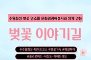 (정도일보) 수원문화재단은 내달 4일부터 벚꽃 개화 시기를 맞아 특별 프로그램을 운영한다. 운영 프로그램은 마을해설사와 왕의 골목 속 숨은 이야기를 만나는 ‘행궁동에 벚꽃길이 열렸습니다’와 문화관광해설사와 팔달산 회주도로 벚꽃길을 걷는 ‘벚꽃 이야기길’ 두 가지이다. ‘행궁동에 벚꽃길이 열렸습니다’는 화홍문을 시작으로 방화수류정과 북암문 일대 벚꽃길을 따라 걷는 프로그램으로, 마을해설사와 함께 걸으며 행궁동 골목과 옛길에 담긴 이야기를 들을 수 있다. 참여자들은 매향동 옛길을 걸으며 정조 시대 군사 마을의 흔적을 만나고, 수원시미디어센터까지 이어지는 코스를 따라 봄꽃이 어우러진 골목의 풍경을 즐길 수 있다. 프로그램은 내달 4일부터 12일, 오전 10시부터 오후 7시까지 12시를 제외한 매시간 운영되며 월요일은 운영하지 않는다. 회차별 2명부터 10명까지 한 팀 단위로 모집 및 운영하여 여유로운 해설을 들을 수 있다. 또 다른 프로그램인 ‘벚꽃 이야기길’은 수원시 문화관광해설사와 함께 수원화성 주변에 핀 벚꽃길을 거닐며 휴식과 힐링의 시간을 갖는 프로그램이다. 수원 벚꽃 명소인 수원화성 서남각루와 팔달산 회주도