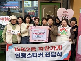 (정도일보) 오산시 대원2동 행정복지센터는 지역사회 나눔 문화 확산을 위해 ‘찐찐’을 대원2동 착한가게 12호점으로 지정하고, 지난 18일 착한가게 인증스티커 전달식을 진행했다고 밝혔다.