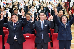 [정도일보 고정희 기자] 수원특례시의회(의장 이재식)는 3월 1일 화성행궁광장에서 열린 제107주년 3·1절 기념행사에 참석해 순국선열의 숭고한 희생과 자주독립 정신을 기렸다. 이날 기념식에는 시민과 보훈단체 관계자, 청소년 등이 참석했으며, 기념식과 공연, 시민 참여 프로그램이 진행됐다. 참석자들은 태극기를 들고 만세삼창에 참여하며 선열들의 용기와 희생을 기억했다. 수원특례시의회에서는 기획경제위원회 장정희 위원장(더불어민주당, 권선2·곡선), 김동은 교섭단체대표(더불어민주당, 정자1·2·3), 김미경 의원(더불어민주당, 매교·매산·고등·화서1·2), 김경례 의원(더불어민주당, 비례대표)도 함께 참석해 독립정신의 의미를 되새겼다. 행사장에서는 독립선언문 낭독과 기념시 낭송이 진행됐으며, 전통놀이 체험과 역사 골든벨 등 시민 참여 프로그램도 함께 운영됐다. 수원은 항일운동의 역사적 현장이 남아 있는 도시로, 지역 곳곳에 독립운동의 정신이 이어져 오고 있다. 이날 행사는 시민들이 역사의 의미를 되새기는 시간으로 마련됐다. 이재식 의장은 “3·1운동은 오늘의 민주주의와 시민 권리를 가능하게 한 출발점”이라며 “그 정신을 기억하는 것은 과거를 기리는 데 그치지 않고