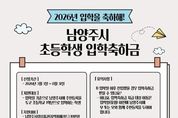 (정도일보) 남양주시는 오는 3월부터 2026년 초등학교에 입학하는 아동의 새로운 출발을 응원하기 위해 입학축하금 지원 사업을 추진한다고 3일 밝혔다. 이번 사업은 초등학교 입학이라는 중요한 생애 전환기를 맞는 아동과 가정을 실질적으로 지원하기 위해 마련한 교육복지 정책의 일환으로 추진됐다. 지원금은 지역화폐로 지급해 교육지원과 동시에 지역 내 소비 촉진의 효과를 도모할 예정이다. 지원 대상은 입학일 기준 남양주시에 주민등록을 두고, 일반 초등학교 또는 대안교육기관에 2026학년도 1학년으로 최초 입학하는 학생이다. 학생 1인당 남양주사랑상품권(지역화폐카드) 10만 원이 지급될 예정이다. 신청은 3일부터 8월 31일까지 남양주시청 누리집 또는 거주지 읍면동 주민센터 방문을 통해 가능하다. 아동과 함께 주민등록이 등재된 부모 또는 사실상 양육자가 신청할 수 있다. 신청자는 본인 명의 휴대전화에 경기지역화폐 애플리케이션을 설치 후 남양주사랑상품권을 등록해야 하며, 지원금은 신청일이 속한 달의 다음 달 말일에 지급된다. 지급된 입학축하금은 지급일 기준으로 3년 이내 사용해야 한다. 사용 기한이 지나면 잔