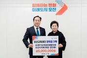 (정도일보) 오산시는 지난 10일 경기도여성단체협의회 오산시지회가 지역 인재 육성을 위해 장학금 500만 원을 기탁했다고 밝혔다. 경기도여성단체협의회 오산시지회는 여성의 권익 증진과 지위 향상을 위해 활동하는 단체로 ▲가정폭력 예방교육 ▲양성평등주간 기념행사 ▲불법촬영 금지 및 저출산 극복 캠페인 등을 추진하며 저소득층을 위한 봉사활동과 다양한 사회공헌 활동을 이어오고 있다. 또한 저소득 취약계층 지원금과 특기 장학금 기탁 등 꾸준한 나눔 활동을 펼친 공로를 인정받아 지난해 3월 오산시 명예의 전당에 등재됐으며, 이번에 장학금 500만 원을 추가로 기탁하며 지역사회 공헌 활동을 이어가고 있다. 강진화 회장은 “지역의 우수한 인재들이 자신의 재능을 마음껏 발휘하며 성장하길 바라는 마음으로 회원들과 뜻을 모았다”며 “앞으로도 지역사회와 함께 인재를 키우는 나눔 활동을 지속적으로 이어가겠다”고 말했다. 이권재 오산시장은 “지역 인재 육성을 위해 따뜻한 나눔을 실천해 주신 경기도여성단체협의회 오산시지회에 깊이 감사드린다”며 “회원들의 정성이 담긴 장학금이 오산의 학생들이 자신의 재능을 펼치고 더 큰 꿈을