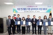 (정도일보) 수원특례시의회는 지난 2일 의회 세미나실에서 수원시의회 의원 연구활동 지원 심의위원회 위원 위촉식을 개최했다. 이번 위촉식은 최근 개정된 ‘수원시의회 의원 연구활동 지원 조례’에 따라, 연구 활동의 객관성과 전문성을 한층 높이기 위해 추진됐다. 의회운영위원회의 추천을 받은 행정, 경영, 교육, 도시, 외교 5개 분야의 전문가 6명이 신규 위원으로 선임됐다. 이날 행사에는 김정렬 부의장(더불어민주당, 평·금곡·호매실) 비롯해 더불어민주당 교섭단체 대표 김동은 의원(더불어민주당, 정자1·2·3), 국민의힘 교섭단체 대표 박현수 의원(국민의힘, 평·금곡·호매실)이 참석해 위촉장을 수여하고, 연구활동의 내실 있는 운영을 위한 적극적인 역할을 당부했다. 새롭게 위촉된 위원들은 향후 2년간 활동하며 ▲의원연구단체 연구계획 승인 ▲연구활동비 적정성 심의 ▲연구용역 결과보고서 평가 등을 수행하게 된다. 김정렬 부의장은 “수원특례시의회 의원 연구활동은 시의원과 전문가가 함께 시민 삶의 질 향상을 위한 정책 역량을 높이고 공부하는 의회 조성을 위한 중요한 활동”이라며, “풍부한 전문성과 현장 경험을 바탕
