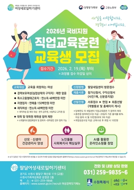 수원 팔달여성새로일하기센터, '2026년 직업교육훈련’ 교육생 모집