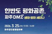 (정도일보) 파주시는 오는 25일 13시부터 16시까지 파주장단콩웰빙마루(탄현면 필승로 396) 2층에서 ‘한반도 평화공존, 파주 디엠지(DMZ) 생태·평화 세미나’를 개최한다. 이번 토론회(세미나)는 정부 국정과제로 제시된 ‘국제 생태·평화·관광 협력지구 개발, 평화경제특구 조성’과 ‘한반도 생물다양성 회복’정책에 선제적으로 대응하고, 파주 디엠지(DMZ)의 평화적 이용과 체계적 보전 방안을 모색하기 위해 마련됐다. 행사에는 강금실 외교부 글로벌기후환경대사, 김경일 파주시장, 박정 국회의원, 박대성 파주시의회 의장을 비롯해 생태·환경·평화 분야 전문가, 시민 등 150여 명이 참석할 예정이다. 1부 개회식에 이은 2부 발표회에서는 ▲강민조 국토연구원 한반도·동아시아연구센터장의 ‘디엠지(DMZ)의 보전 및 평화적 이용방안’▲서형수 국립생태원 생태조사연구실 전임연구원의 ‘생물다양성 보전을 위한 디엠지(DMZ) 일원의 생태적 중요성과 보전 방향’▲조성택 경기연구원 경기북부특별자치도연구센터장의 ‘경기북부 접경지역의 발전방향’을 주제로 발표가 진행된다. 3부 전문가 토론에서는 이상준 한미글로벌 통일한반도건