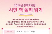 (정도일보) 김포시 풍무도서관은 오는 4월부터 ‘2026년 시민 책 돌려 읽기’ 독서 릴레이를 운영한다. 이웃과 책을 돌려 읽으며 자연스럽게 책 읽는 도시 문화를 만들자는 취지로 기획된 이 사업은 2007년부터 시작되어 현재까지 매년 운영되고 있다. 올해 ‘시민 책 돌려 읽기 지정 도서’는 총 100권으로 국내외 수상 도서를 비롯해 국립중앙도서관 등 관계 기관 추천 도서, 서점 베스트셀러, 신간 도서 가운데 선정됐다. 4월 1일부터 풍무도서관 1층 통합데스크로 방문해 1인당 최대 2권까지 대출할 수 있으며, 대출한 도서는 2주 이내에 읽은 후 이웃에게 전달하거나 풍무도서관으로 반납하면 된다.