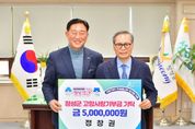 (정도일보) 장성군 서삼면 출신 향우 정창권 인셀㈜ 대표가 최근 고향사랑기부에 동참했다. 배터리 및 에너지저장장치 제조 기업인 인셀㈜를 이끌고 있는 정 대표는 최근 군을 방문해 고향사랑기부금 지정기부사업 ‘장성 조정꿈나무 경기정 지원’에 500만 원을 쾌척했다. 감사 인사를 전한 김한종 장성군수는 “장성 청소년의 미래를 위해 소중하게 사용하겠다”고 말했다. 고향사랑기부제는 개인이 주소지 외의 지방자치단체에 연간 2000만 원 이내로 기부하면 세액 공제와 답례품을 받을 수 있는 제도다. 기부금은 청소년 육성·보호, 주민 문화·예술·보건 증진, 지역공동체 활성화, 복리 증진 등에 사용된다. 고향사랑이(e)음, 은행, 휴대전화 앱을 사용하거나 전국 농협은행을 통해 참여할 수 있다.