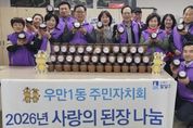 (정도일보) 수원시 팔달구 우만1동 주민자치회는 지난 9일, 우만1동 행정복지센터에서 지난해 전통 방식으로 담가 숙성한 된장을 관내 취약계층에게 전달하는 ‘사랑의 된장 나눔 행사’를 진행했다. 이번 행사는 2025년 주민자치 활성화 사업의 일환으로 추진된 ‘사랑의 된장 배우고 나누기’ 사업의 결실로, 지난해 전통 방식으로 직접 담근 된장을 약 1년간 정성껏 숙성한 뒤 어려운 이웃과 나누기 위해 마련됐다. 우만1동 주민자치회는 경기도 전통음식협회와 협업하여 다문화가정과 주민자치회 위원들을 대상으로 전통 장 담그기 교육을 실시하고, 메주 만들기부터 장 가르기까지 전 과정을 함께하며 전통 식문화 계승과 공동체 의식 함양에 힘써왔다. 이날 전달된 된장은 주민자치회 위원들의 정성과 기다림이 담긴 전통 장으로, 관내 취약계층 가구에 순차적으로 전달될 예정이다. 강경수 우만1동 주민자치회장은 “1년 동안 정성껏 숙성시킨 된장을 이웃과 나눌 수 있어 매우 뜻깊게 생각한다”며 “앞으로도 전통문화를 계승하고 따뜻한 나눔을 실천하는 주민자치회가 되도록 노력하겠다”고 말했다. 최명희 우만1동장은 “주민들이