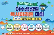 (정도일보) 여수시는 시민의 자발적인 독서 참여를 이끌고 생활 속 독서문화를 확산하기 위해 '2026년 여수섬섬길 독서 마라톤 대회'를 오는 3월부터 8월까지 6개월간 운영한다. 이번 대회는 책 1쪽을 1미터로 환산해 누적 독서량으로 여수섬섬길 코스를 완주하는 방식의 독서 프로그램으로 여수시민이라면 개인·가족·단체 누구나 참여할 수 있다. 참가자는 자신의 독서량에 맞춰 코스를 선택해 도전할 수 있다. 개인 참가자는 여수섬섬길 3km·5km·10km 코스, 가족·단체 참가자는 하프코스(21km) 또는 풀코스(42km) 중 하나를 선택하면 된다. 참가 신청은 오는 3월 3일부터 8월 16일까지 여수시립도서관 누리집을 통해 가능하다. 참가자는 대회 기간 동안 도서관 대출도서 또는 개인 소장도서를 읽고 독서마라톤일지(독서감상문)를 작성해 누적 독서량을 기록하게 되며 선택한 코스 달성을 목표로 독서를 이어간다. 완주자에게는 완주증서와 개인별 독서마라톤일지를 책자로 제작해 제공한다. 또한 ▲도서 대출 권수 확대(기존 5권에서 12권) ▲예약도서 권수 확대(기존 2권에서 4권) ▲완주 기념 사은품
