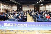 (정도일보) 파주시는 지난 11일 파주출판도시 지혜의숲 대회의실에서 시민과 도서관·교육·출판 관계자 등 200여 명이 참석한 가운데 ‘파주시 독서국가 선포식’을 개최했다. 이번 선포식은 지난 1월 국회의원회관에서 열린 ‘독서국가 선포식 및 독서국가 추진위원회 출범식’의 취지에 발맞춰 마련된 행사로, 인공지능(AI) 시대에 대응하는 독서교육의 국가적 전환 움직임에 적극 동참하기 위해 기획됐다. 특히 대한민국 출판문화산업을 선도해온 파주출판도시에서 개최되어 ‘책의 도시’파주의 위상을 다시 한번 확인하는 계기가 됐다. 이날 행사에서는 ▲전 세대 독서문화 확산 ▲학교·도서관·가정·지역사회가 함께하는 지속 가능한 독서 생태계 구축 ▲출판 및 문화산업 존중과 지식·콘텐츠 선순환 기반 강화 ▲경청과 토론이 살아있는 시민사회 구현 ▲독서를 통한 미래 준비 등의 내용을 담은 선언문이 발표됐다. 이어 진행된 대형 붓글씨 시연은 독서국가를 향한 파주의 의지를 상징적으로 표현하며 참석자들의 큰 박수를 받았다. 행사장에는 선언의 의미를 되새기려는 시민들의 발걸음이 이어졌고, 독서에 대한 높은 관심과 공감대를 확인할 수 있었다. &nb