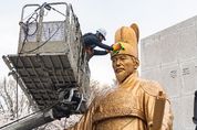 (정도일보) 수원특례시가 봄을 맞아 6일 팔달산에 있는 정조대왕 동상을 세척하고, 주변 환경을 정비했다. 정조대왕 동상에 겨우내 쌓인 먼지와 오염물질을 고압세척기로 제거하고, 산화된 부분도 깨끗하게 정비했다. 물과 중성세제를 혼합한 세척액을 사용해 동상 표면을 청소하고, 부드러운 천으로 닦아 먼지와 녹을 말끔하게 제거했다. 동상 주변 환경정비도 진행했다. 시민과 관광객들이 쾌적한 환경에서 정조대왕 동상을 관람할 수 있도록 주변 시설물과 관람 공간을 정리했다. 정조대왕 동상은 팔달산을 대표하는 상징물로, 많은 시민과 관광객이 찾는 수원의 주요 역사·문화 자원이다. 수원시는 정조대왕 동상을 정기적으로 점검하고, 관리하고 있다. 수원시 화성사업소 관계자는 “정조대왕 동상은 많은 시민과 방문객이 찾는 팔달산의 주요 시설물인 만큼 체계적으로 유지관리를 하고 있다”며 “정기적인 점검과 정비로 쾌적한 환경을 유지해 나가겠다”고 말했다.