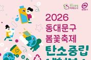(정도일보) 서울 동대문구는 4월 4일부터 5일까지 장안1수변공원에서 열리는 ‘2026 동대문구 트로트축제×봄꽃축제’에서 탄소중립 체험부스를 운영한다고 밝혔다. 이번 체험부스는 기후위기의 심각성을 알리고, 구민들이 일상 속에서 실천할 수 있는 탄소중립 생활을 쉽고 재미있게 체험할 수 있도록 마련됐다. 행사 기간 동안 재활용 악기를 활용한 넌버벌 공연 ‘사운드 서커스’를 비롯해 ▲탄소중립 퀴즈 ▲시민참여 탄소중립 퍼포먼스 ▲자전거 발전 비눗방울 만들기 ▲재활용 악기 체험 ‘정크 워크숍’ ▲탄소중립 보드게임 체험 등 다양한 참여형 프로그램이 운영될 예정이다. 아울러 현장에서는 에너지 절약 실천을 통해 인센티브를 받을 수 있는 ‘에코마일리지’ 가입 안내와 함께 일상 속 탄소중립 실천 방법도 홍보할 계획이다. 이필형 동대문구청장은 “봄꽃축제를 찾는 구민들이 즐거운 체험을 통해 자연스럽게 탄소중립을 이해하고 실천하는 계기가 되길 바란다”며 “앞으로도 구민 참여형 탄소중립 프로그램을 지속 확대해 나가겠다”고 말했다.