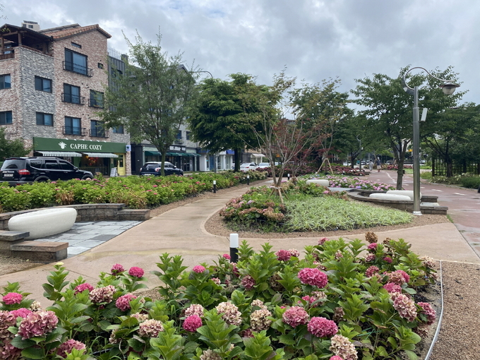 신동수변공원은 신동지구 내 원천천과 연계된 공원이다. 지난 2017년 2만4천여㎡ 규모로 조성돼 최근까지 가꿔지고 있는데, 올 여름에는 수국정원을 조성해 공원에 활기를 불어넣었다. 지난 6월 초여름에 다양한 품종의 2천700본에 달하는 수국을 식재해둔 상태여서 내년 6월이면 아름다운 수국정원을 즐길 수 있을 것으로 기대된다. 원천천을 그대로 살려 조성된 공원인 만큼 구불구불한 공원길을 따라 걷는 즐거움과 공원 내 도서관과 인접한 카페거리 맛집도 이용하면 도심 속 휴가가 따로 없다.