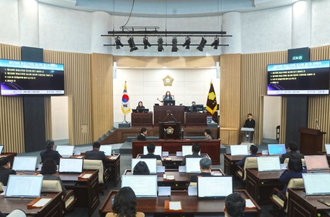 김경희 의장은 개회사를 통해 “지난 2월, 한국지방자치학회 우수조례 시상식에서 화성시의회가 발의하여 제정된 조례가 대상과 최우수상을 수상하는 영예를 안았다. 100만 특례시를 준비하는 의회의 노력이 입증되어 그 의미가 크며 앞으로도 화성시의회가 전국을 선도하는 지방의회로 자리매김하도록 정진해 주길 바란다”라고 하며 “이번 임시회에서는 민생과 밀접하게 연관된 조례안을 처리하므로 의원님들께서는 안건 심의에 세심한 주의를 기울이고 시민의 대변자로서 역할을 충실히 해 줄 것을 부탁드린다”라고 전했다.