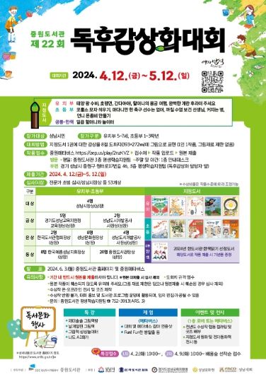 (정도일보) 성남도시개발공사 중원도서관은 올해 제60회 도서관주간을 맞이해 제22회 독후감상화대회를 개최한다고 25일 밝혔다.