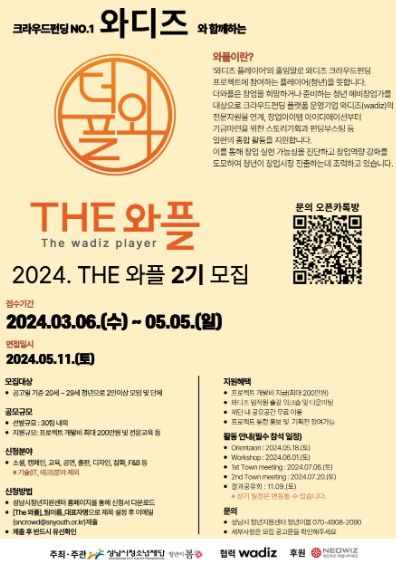 『THE와플』은 작년 1기에 이어 올해 2기째 진행되는 성남시청소년재단과 크라우드 펀딩 기업 와디즈의 협력사업으로, 네오위즈 마법나무재단의 후원으로 진행된다.