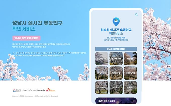 이번 실시간 유동 인구 확인 서비스는 앞선 지난해 1월 성남시와 SK텔레콤이 협업해 도입·운영 중인 ‘실시간 유동 인구 모니터링 시스템’을 기반으로 기획됐다.