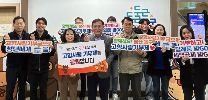 이번 기부는 울산 동구가 지난 3월말 고향사랑기부제 모금 활성화를 위한 선진지로 전남 목포를 방문한 자리에서 유대관계 증진 및 업무협력 강화를 위해 양 지자체의 공무원들이 상대 지자체에 고향사랑기부금을 기탁하기로 자발적인 결정한 데 따른 것이다.