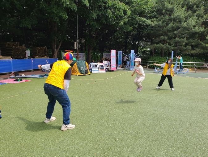 놀이활동가(6명)와 자원봉사자(25명)들이 참여자들과 놀이 활동을 함께한다.