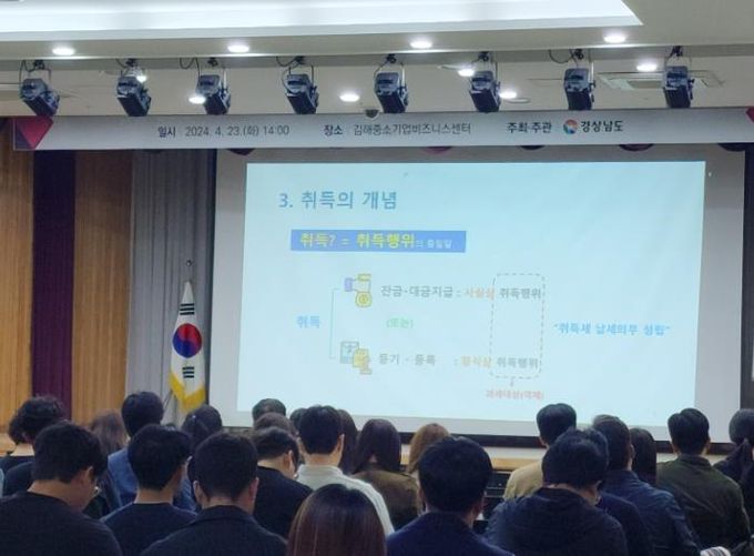 (정도일보) 김해시는 지난 23일 김해중소기업비즈니스센터 대회의장에서 경상남도 주관 ‘기업 지원을 위한 2024년 지방세 설명회'를 개최했다고 밝혔다.