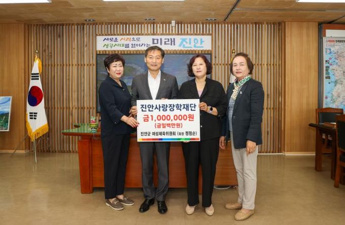 (정도일보) 진안군 여성체육위원회가 진안사랑장학재단에 장학금 1백만원을 기탁했다.