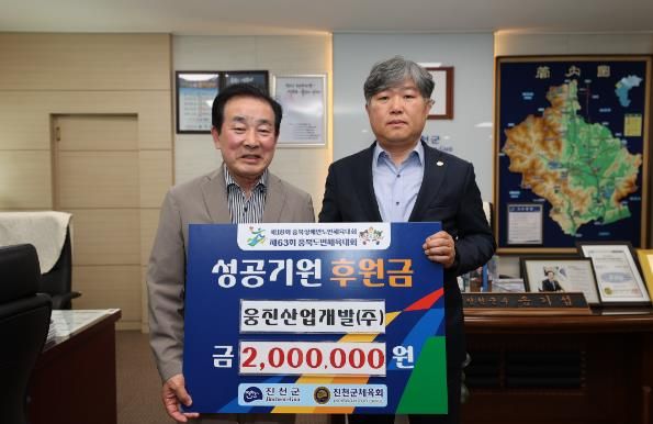 (정도일보) 웅진산업개발(주)는 24일 진천군청을 방문해 제63회 충북 도민체육대회 운영을 위해 써달라며 후원금 200만 원을 전달했다.