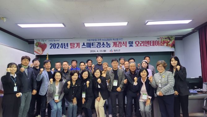 (정도일보) 청도군은 4월 23일 딸기 재배 농가를 대상으로 '스마트강소농교육' 개강식을 성공적으로 개최했다.