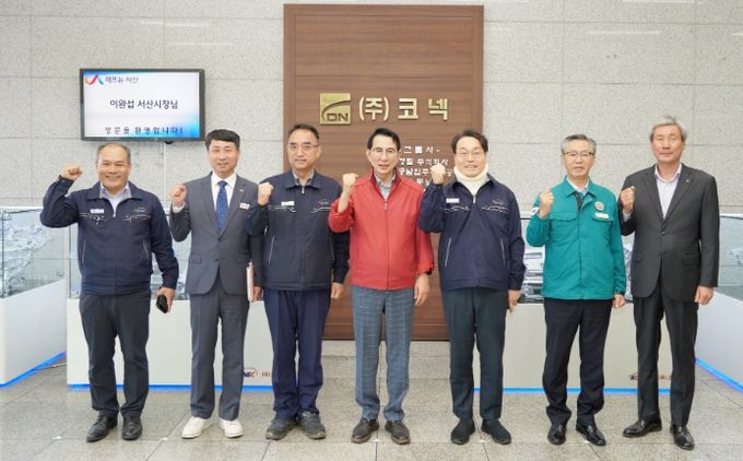 (정도일보) 이완섭 서산시장이 24일 충남 서산시 고북면에 소재한 ㈜코넥, ㈜더휴를 방문해 관내 기업 현황을 파악하고 지역 상생 발전을 위한 협력 방안을 논의했다.
