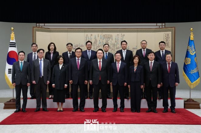 (정도일보) 4월 24일 윤석열 대통령은 용산 대통령실에서 정진석 비서실장과 홍철호 정무수석에게 임명장을 수여했다.