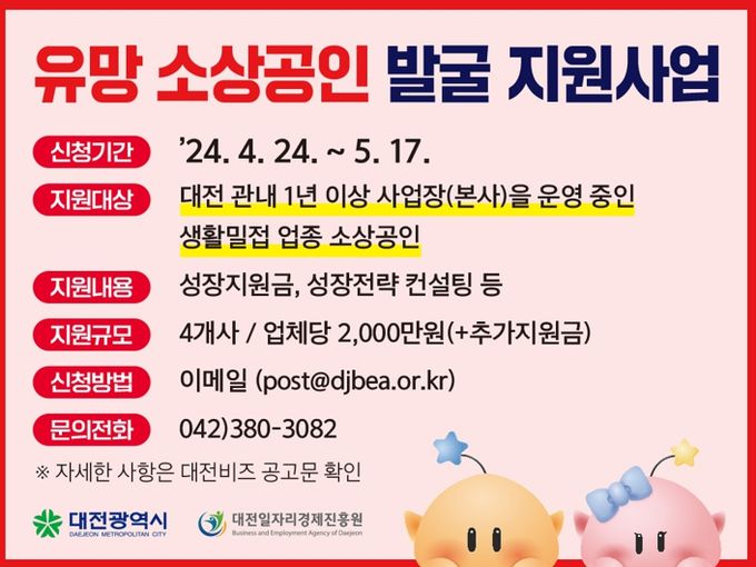 신청을 원하는 소상공인은 대전시 중소기업지원 포털 대전비즈에서 공고문을 확인하고, 이메일로 신청하면 된다.