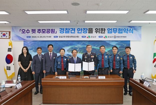 (정도일보) 임실군과 경찰인재개발원이 오수 펫 추모공원 내 경찰견 안장 업무를 공동으로 협력 추진하기 위해 지난 24일 업무협약을 체결했다.